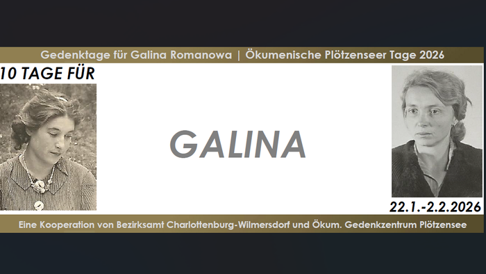 Vom 22. Januar bis 2. Februar 2026 werden in der Gedenkregion Charlottenburg-Nord Gedenktage für Galina (ukrainisch: Halyna) Romanowa stattfinden. Mit ihnen soll an die junge ukrainische Ärztin erinnert werden, die in der NS-Zeit in Zwangsarbeiterlagern arbeiten musste und im November 1944 in der Hinrichtungsstätte Plötzensee ermordet wurde.
