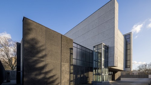 Die Kath. Gedenkkirche Maria Regina Martyrum (1960–63) wird geprägt von dem monumentalen, abstrakten Altargemälde „Das himmlische Jerusalem“ von G. Meistermann.